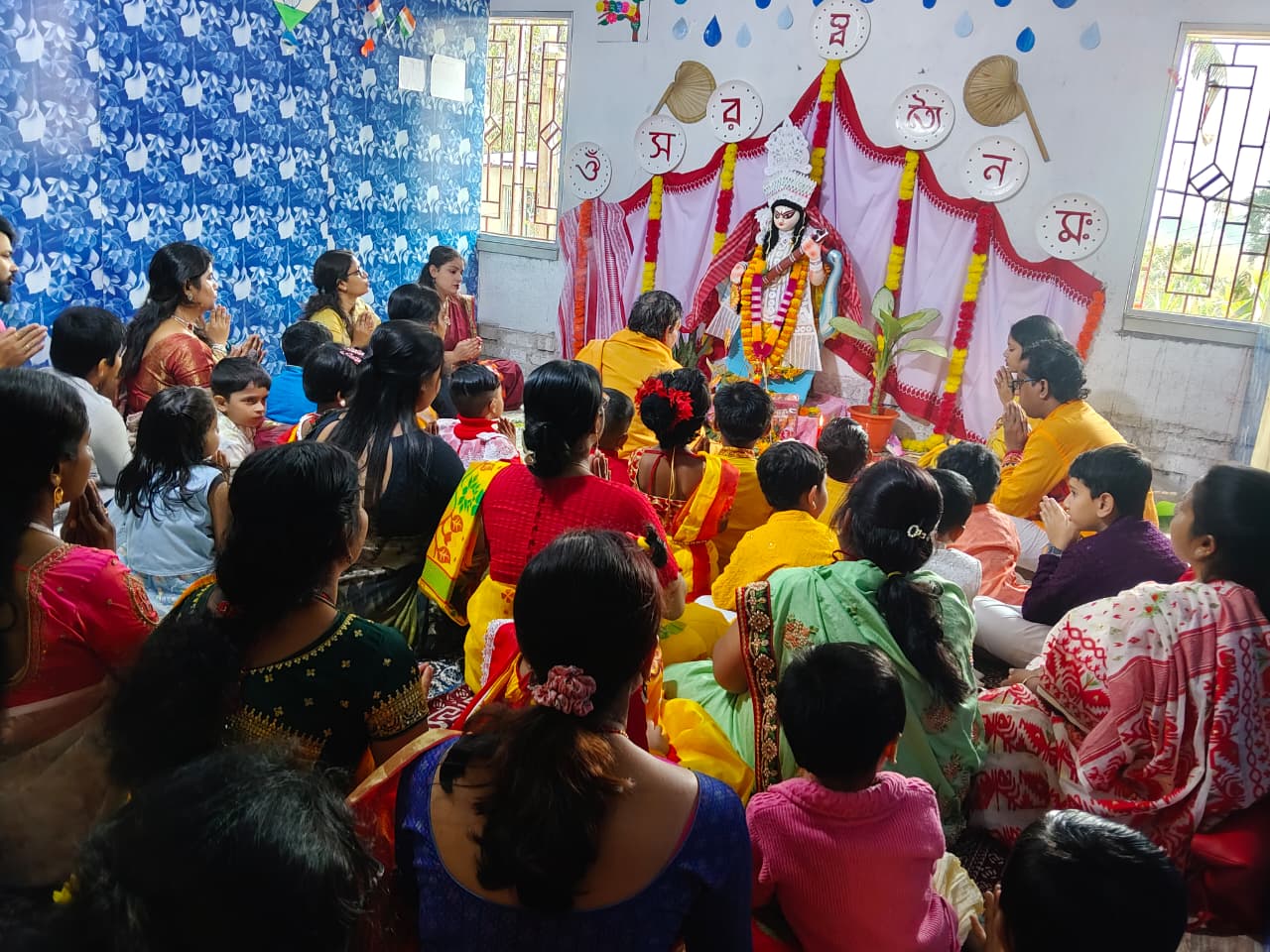 GATHERED ALL GUARDIANS AND STUDENTS IN OUR SARASWATI PUJA.